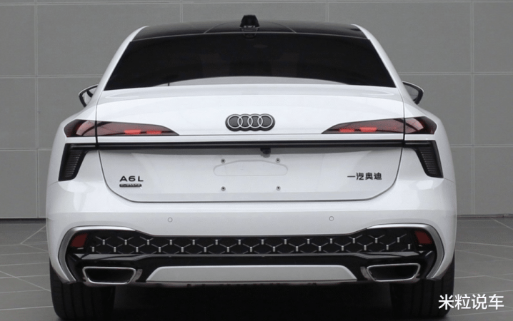 侧面来看,全新一汽奥迪A6L采用了双色反光镜设计,搭配上全景黑色的大天幕,颜值部分确实变得时尚了不少。而车门部分则是采用的半镂空的机械门把手设计,搭配上19英寸的熏黑轮毂以及较低的车身离地间隙,运动感表现得很理想。车型尾部几乎也与奥迪A5L采用如出一辙的设计,有着贯穿样式的黑色装饰件,也拥有贯穿样式的黑色扩散器,搭配上双边共双出的排气管,颜值依然是以高度运动化与时尚感著称。